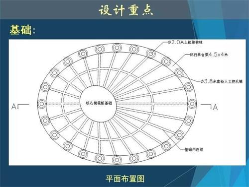 廣州塔外部鋼結(jié)構(gòu)體系由24根立柱、斜撐和圓環(huán)交叉構(gòu)成,各立柱間隔相當,環(huán)形排列。