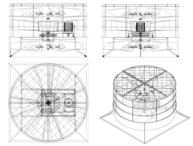 該風(fēng)機(jī)被用在超靜音冷卻塔配置上,風(fēng)機(jī)為鋁合金設(shè)計(jì),航空級鋁合金葉片,輪轂采用金屬模成型,葉片用不銹鋼U型碼連接,無級調(diào)節(jié)風(fēng)機(jī)角度,表面噴涂防腐處理,具有全壓高、風(fēng)量大等優(yōu)點(diǎn)。而且其氣動性能好、高強(qiáng)度、耐腐蝕,并可通過改變?nèi)~片安放角度方法滿足工藝要求及提高裝置效率。該風(fēng)機(jī)最大的特點(diǎn)是突破傳統(tǒng)冷卻塔的4片、6片或者8片風(fēng)葉,該技術(shù)為國家發(fā)明專利,在一臺冷卻塔上安裝多層多片風(fēng)葉,常規(guī)配置為21片超靜音風(fēng)葉,保證風(fēng)量滿足的情況下達(dá)到降低噪音的效果;